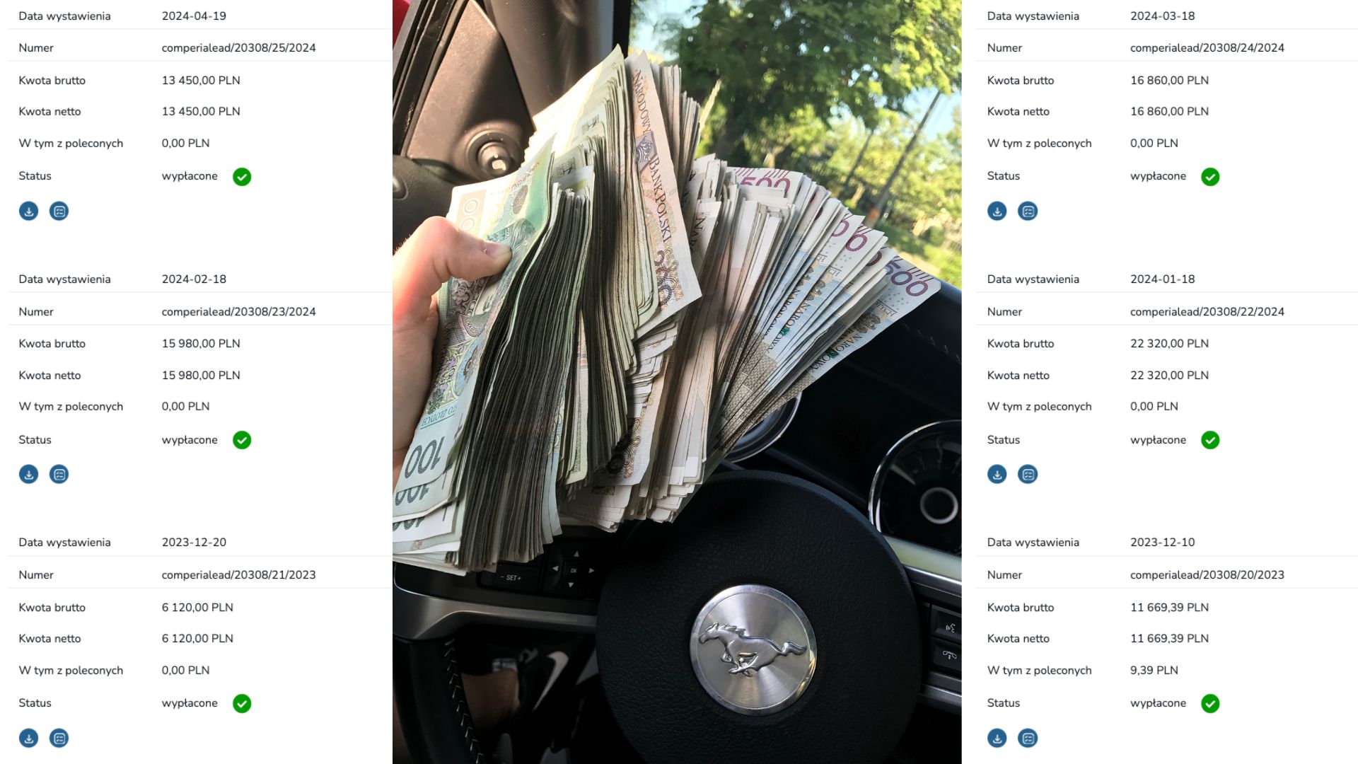 - Dalsze kroki: Po zarobieniu pierwszych pieniędzy nie osiądziemy na laurach i pokażemy Ci jak zarobić kolejne 1000-3000 PLN nadal bez konieczności polecania.